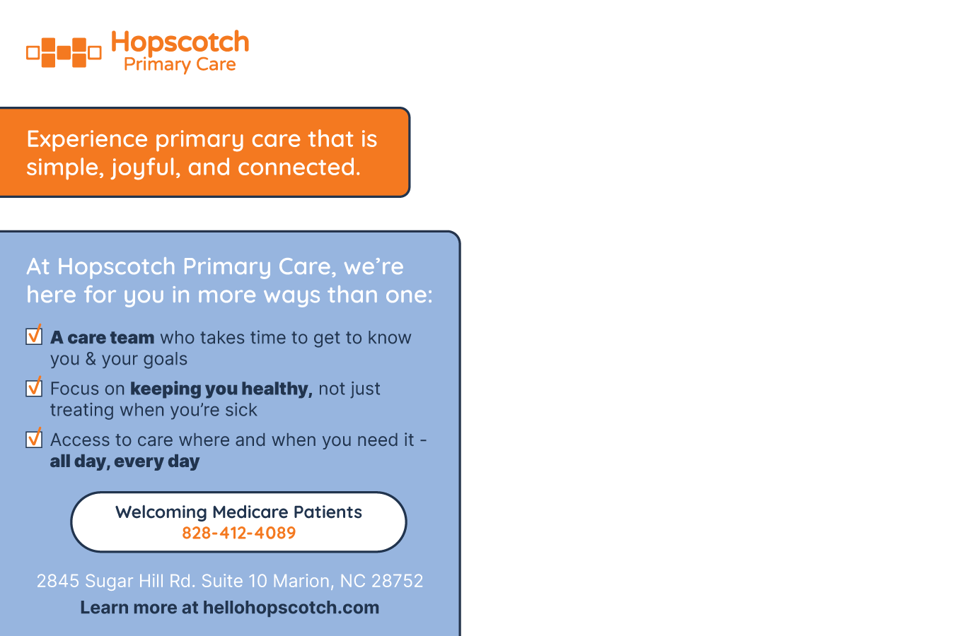 I have collaborated with Hopscotch Primary Care for years. They provide advanced primary care to rural senior communities, and my work helps translate their expertise into clear, engaging design across multiple channels.